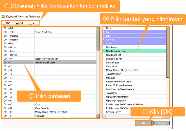 Daftar pintasan (Panduan Pengguna Clip Studio Paint)