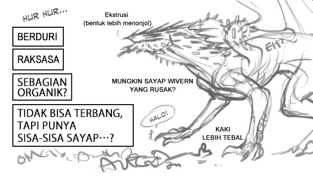Daftar kemampuan naga biasanya sangat membantu saya dalam mendesain penampilannya. Kita bisa menggunakan konsep naga hutan saya sebagai contoh.