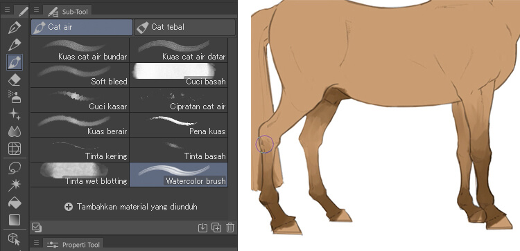 Setelah itu, gunakan Kuas Cat air lembut untuk menghaluskan area highlight sambil mengikuti bentuk tubuh.
