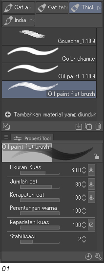 Gambar 01: Ini adalah Kuas Oil Paint Flat yang digunakan dalam latihan ini, dengan pengaturan standar.