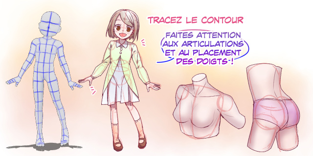 Bien entendu, la forme du corps et de ses muscles varie, mais peut dans tous les cas être tracée à partir d’une silhouette de base.