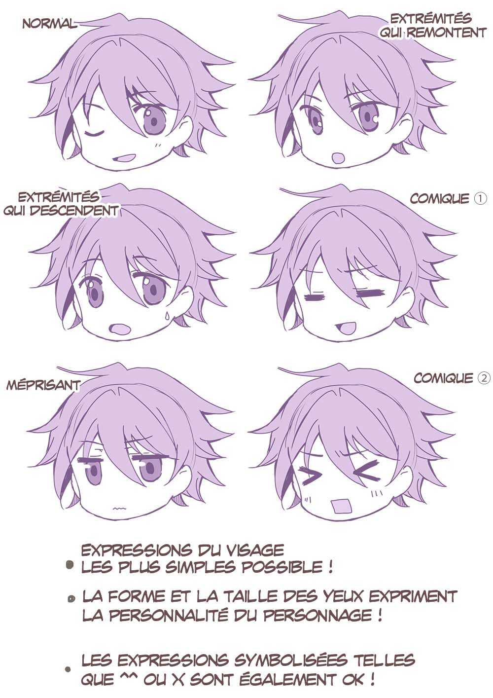 Ne vous retenez pas pour représenter des expressions de visages variées et comiques propres aux personnages chibi.
