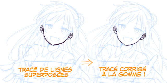 La superposition de plusieurs lignes crée un bon trait qui peut être corrigé et épuré par la suite avec la gomme.