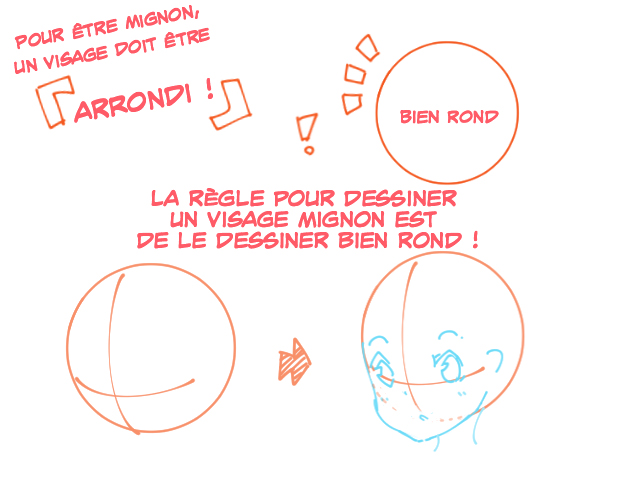 En un mot, pour dessiner un visage mignon, il suffit de volontairement le dessiner arrondi !