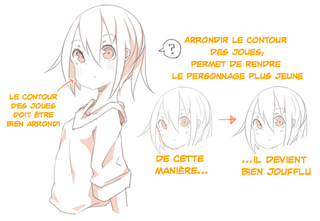 En d’autres termes, si vous tracez les joues de votre personnage bien rondes, le côté « jeune » ressortira et vous obtiendrez naturellement un visage mignon.