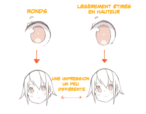 Bien qu’il existe différentes formes d’œil, ici aussi il est dit que les « yeux ronds » donnent une impression mignonne.