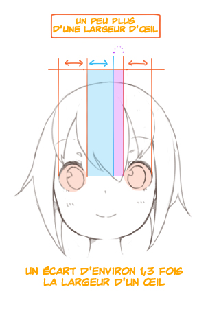 La distance placée entre les yeux dépend du style de chacun, mais un écart « d’une largeur d’un œil » est communément laissé entre les deux yeux.