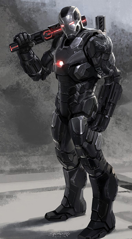 J’étais principalement responsable de la conception des combinaisons « Iron Man Mk50 » et « War Machine Mk4 ». Le défi cette fois-ci était que Tony Stark allait porter l’armure « Bleeding Edge », qui ne ressemble à aucune armure dans la mesure où elle est développée autour de lui avec des nanotechnologies plutôt que d’être construite à partir de pièces usinées et assemblées. Un nouveau procédé de fabrication et de nouveaux matériaux nécessitent une logistique de forme complètement différente. Si vous fabriquez essentiellement quelque chose à partir de métal liquide, vous ne l’utiliserez pas pour fabriquer des écrous et des boulons traditionnels et des panneaux séparés. Vous n’avez pas besoin de lignes de coupe traditionnelles si vous pouvez modifier la dureté et la flexibilité de vos matériaux à volonté. Néanmoins, le public a besoin d’un élément compréhensible pour saisir la fonctionnalité de la tenue et apporter une touche de « réalisme ». Par conséquent, la conception de la combinaison « Mk50 » inclut des joints semi-rigides en accordéon dans les zones qui l’exigeaient, afin de ne pas avoir l’allure de caoutchouc ou du « T1000 » de Terminator.