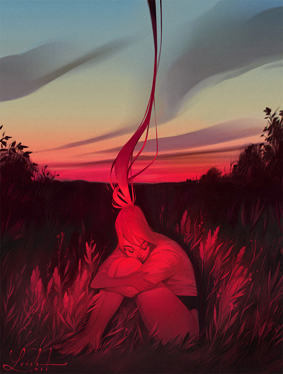 L’un de mes projets personnels préférés est mon court-métrage d’animation « Trichrome », qui a commencé comme film de fin d’études à la « Utrecht School of the Arts ». J’aimerais créer deux autres courts-métrages pour cela. J’ai adoré travailler dessus, car c’est une histoire surréaliste au ton légèrement dystopique ; mes genres préférés ! J’aime vraiment me lancer des défis et aller au-delà de ce que je fais habituellement (peintures numériques qui n’ont pas beaucoup d’histoire) en créant toute une histoire lorsque je me sens inspirée. C’était vraiment un travail très amusant et vraiment personnel pour moi ! Je dirais qu’il s’agit de l’œuvre la plus complète et originale que je n’ai jamais créée. J’espère que je pourrai trouver le temps de terminer cette série un jour !