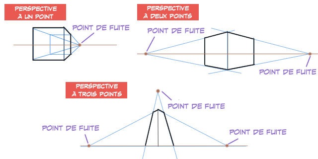 On note quatre facteurs à prendre en compte lorsque l’on souhaite dessiner en perspective :