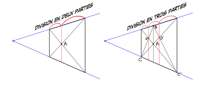 En traçant une ligne en diagonale, cela divise l’objet dessiné en perspective.