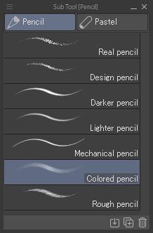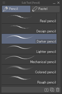 Pour ce faire, j’utilise un crayon dur et pointu ; le [Crayon plus sombre] de CLIP STUDIO PAINT.