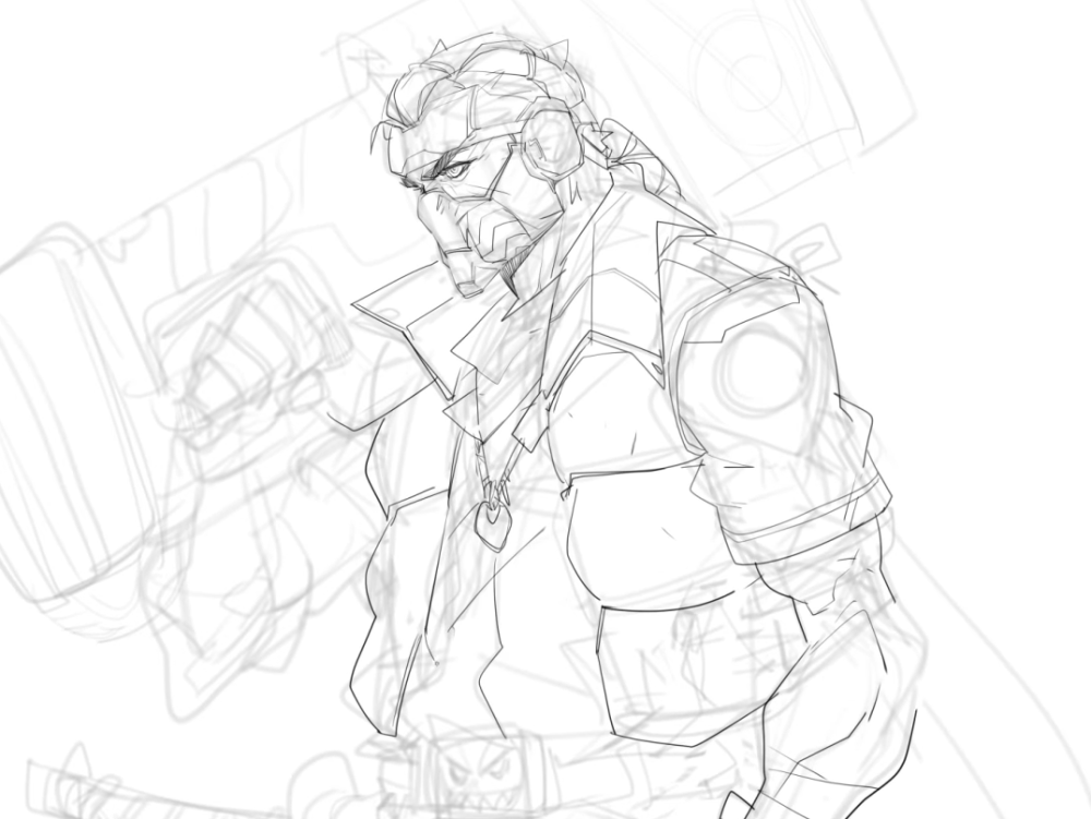 Je fais habituellement des échauffements avant de commencer un concept à partir de zéro. Il s’agit d’un bon moyen d’explorer différentes idées et des concepts variés. Cependant, pour ce dessin, j’ai décidé d’y aller à l’aveuglette pour résoudre les problèmes que je rencontre, en particulier au niveau du visage et des vêtements.