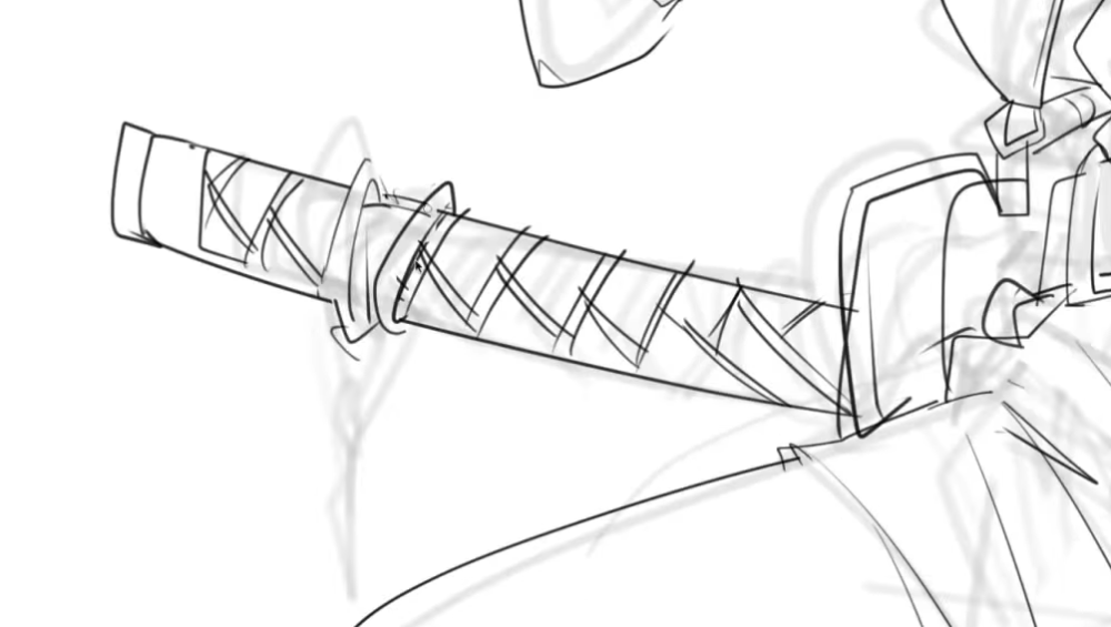 Je crée un nouveau calque et commence à tracer par-dessus l’esquisse. En même temps, vous pouvez voir que certains éléments sont nouveaux. Pendant la phase de brouillon, vous pouvez dessiner beaucoup de détails en même temps, mais au stade du dessin au trait, il est important de décider quels détails vous voulez conserver.