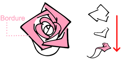 Voici une autre esquisse, cette fois illustrant la rose vue de face.