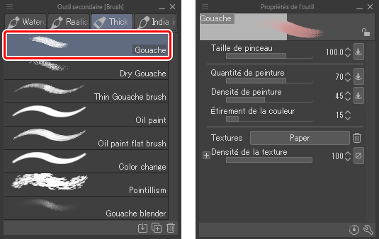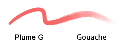 ④ Utilisez l’outil [Gouache] pour mélanger et unifier l’ombre appliquée avec la [Plume G] avec le reste de votre peinture.