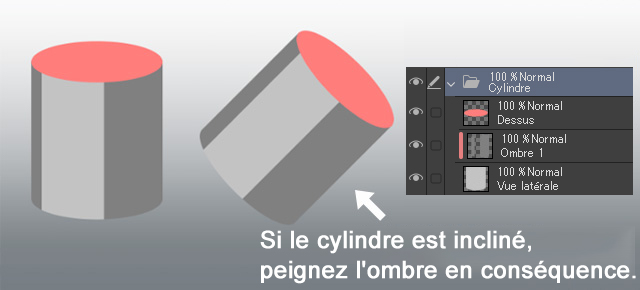 Si le cylindre est incliné, c’est une bonne idée d’incliner l’ombre en conséquence.