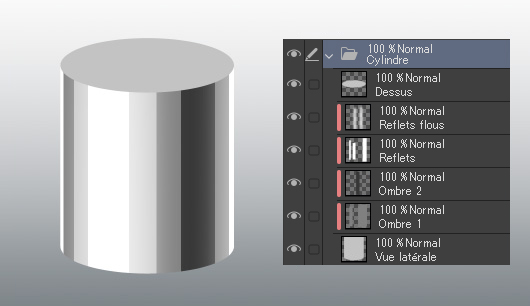 Le fait d’utiliser des calques séparés pour les côtés et le dessus facilite la peinture des ombres et des reflets lors des étapes suivantes.