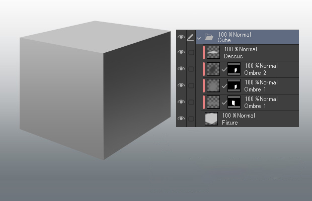 Définir un masque de calque sur chaque face facilite la peinture des ombres.