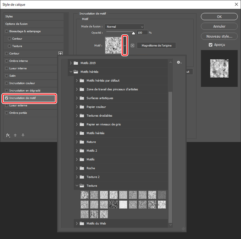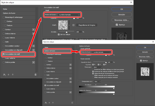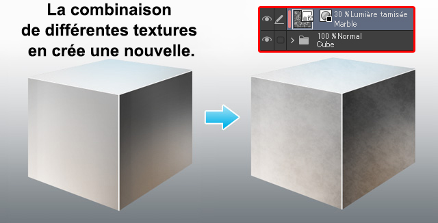 Changez le mode de combinaison de la texture pour « Lumière tamisée » et réduisez l’opacité.