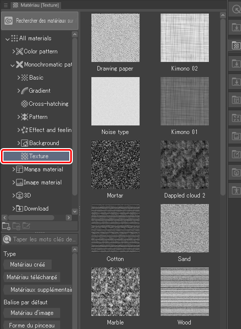 La texture utilisée pour cet exemple se nomme « Oil Paint » et provient du répertoire de CLIP STUDIO PAINT.
