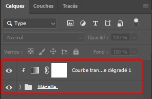 Créez un calque de carte de dégradé et écrêtez-le sur le dossier contenant tous les calques de la médaille.