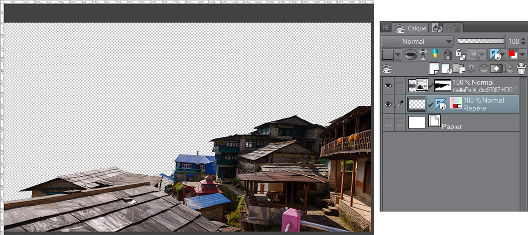 Dans ce tutoriel, je vais réaliser un matte painting en utilisant CLIP STUDIO PAINT. Cette image représentera un village de montagne sous un temps nuageux pour donner du caractère à l’ambiance générale.