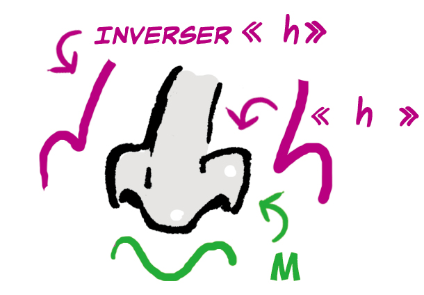 De face, les nez sont dessinés à l’aide d’un « M » et d’un « h ».