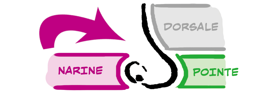 Rappelez-vous : La dorsale est un os dur qui ne bouge pas, mais la pointe et les narines sont amovibles.