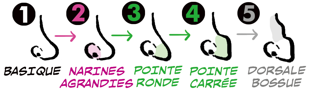 Il y a trois parties principales du nez qui peuvent être exagérées séparément.