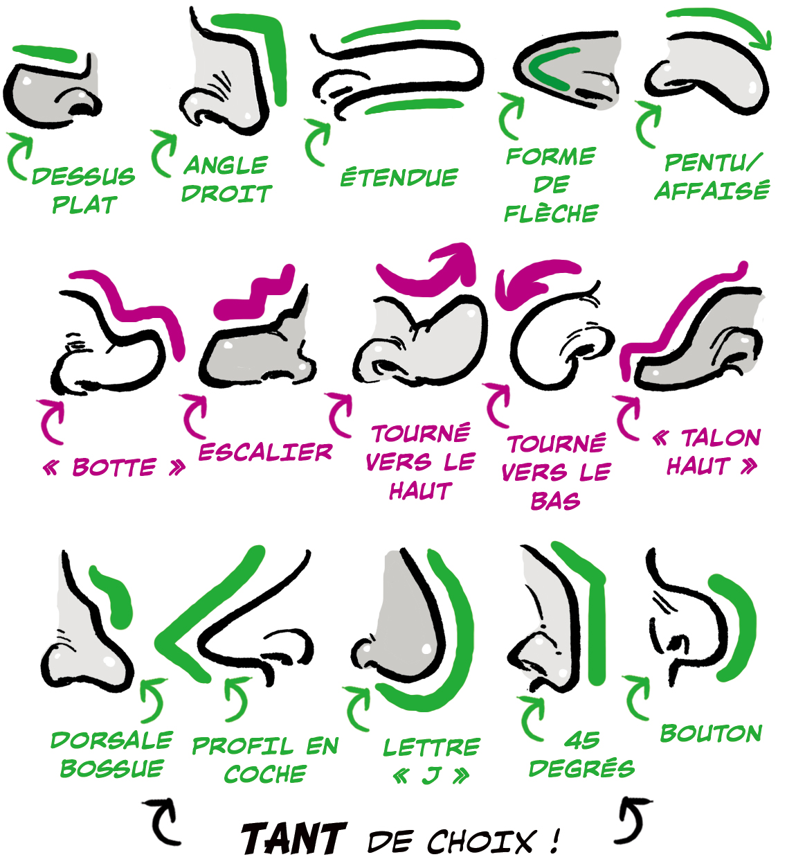 Les nez sont la caractéristique la plus sculpturale du visage, et en tant que tels, ils offrent une multitude de possibilités de variation.