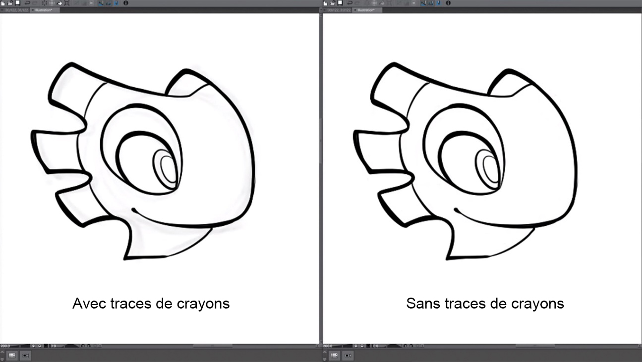 Nettoyons la toile en nous débarrassant des lignes de crayon figurant sur le calque placé sous le dessin au trait.