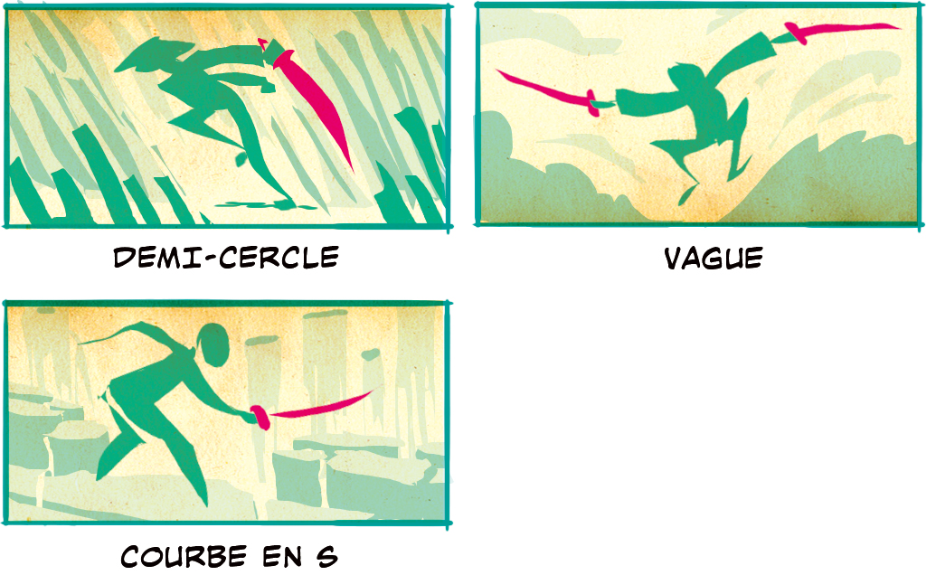 Entrons maintenant dans le vif du sujet, les combats à l’épée ! Il existe différentes façons de dessiner des épées en action, que nous examinerons ci-dessous.