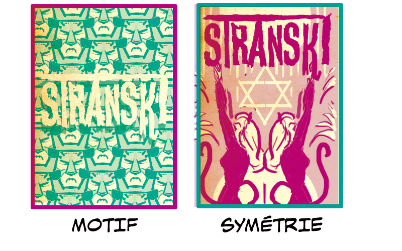 Les effets Motifs et Symétrie sont de bonnes alternatives décoratives aux motifs de couverture traditionnels. Les motifs répétitifs sans couture peuvent être assez redondants, de sorte que le logo en Motifs est simplement en blanc. Cela l’aide à ne pas détourner l’attention du modèle, mais aussi à se démarquer suffisamment pour être lisible. La Symétrie permet une couverture de bande dessinée plus traditionnelle qui comprend des figures comme dans les autres exemples. Pourtant, elle garde cette touche décorative retrouvée dans l’effet Motifs tout en offrant quelque chose de visuellement différent à son public.