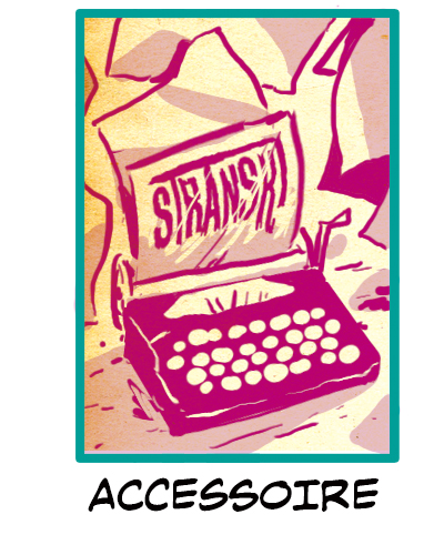 L’Accessoire est un choix de couverture unique qui, comme les effets Motifs et Symétrie, rompt avec le moule traditionnel de la couverture de bande dessinée. Dans ce cas, l’accessoire est une machine à écrire avec le logo est intelligemment incorporé sur la page qui sort. L’accessoire et le logo sont à la fois au centre de cette composition avec un arrière-plan relativement simple. Nous vous recommandons de choisir un accessoire qui est un thème central ou commun tout au long de votre travail afin qu’il solidifie davantage votre logo avec votre histoire.