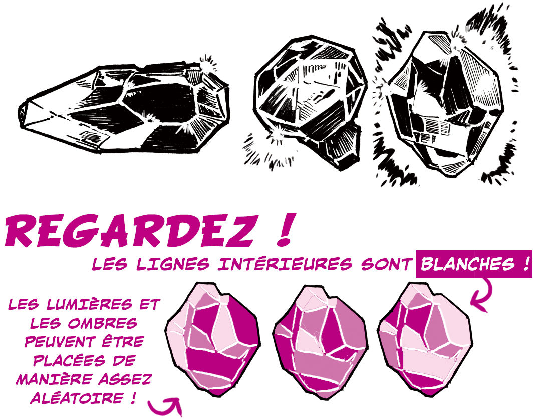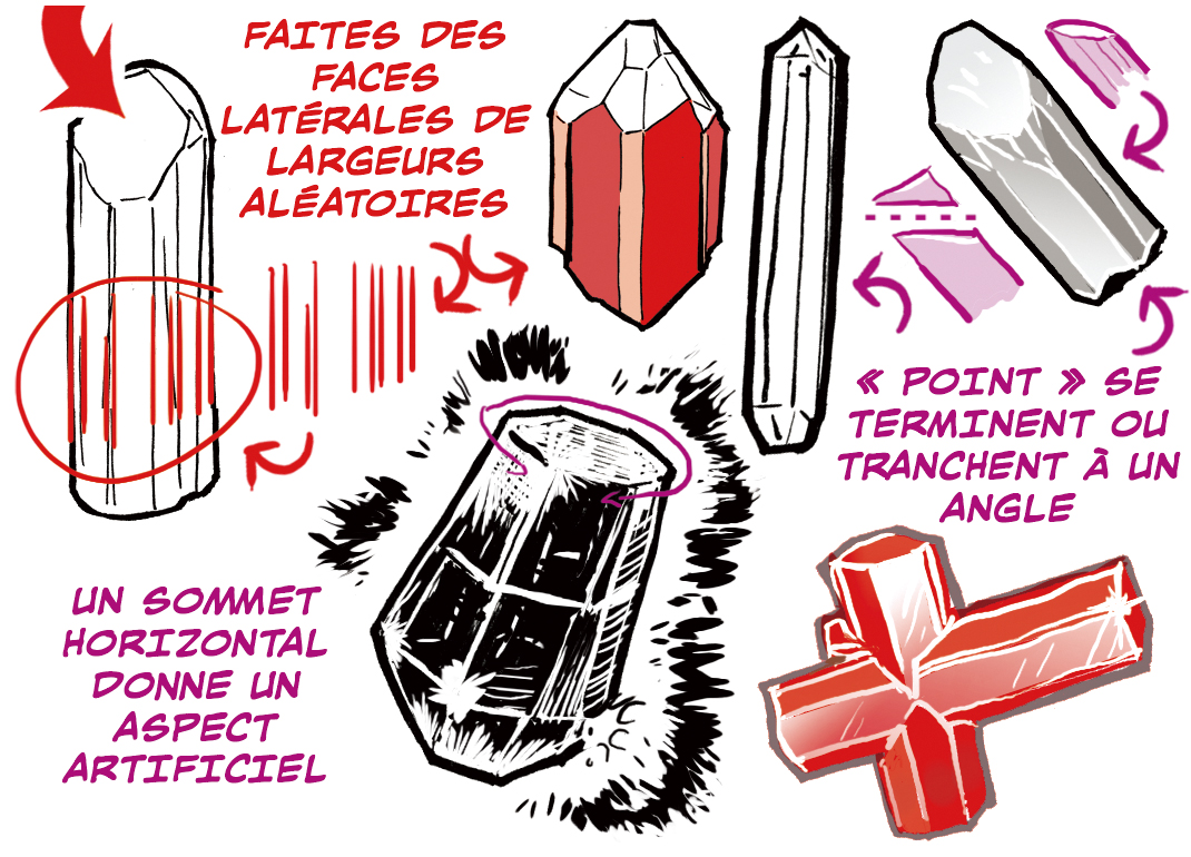 Les pierres précieuses et les cristaux sont souvent caractérisés par des motifs de surface plate et géométrique.