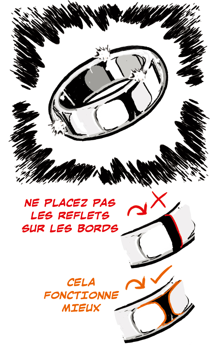 Avec des formes dorées plus complexes, les reflets seront tirés le long des bords incurvés.