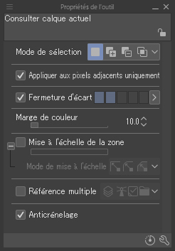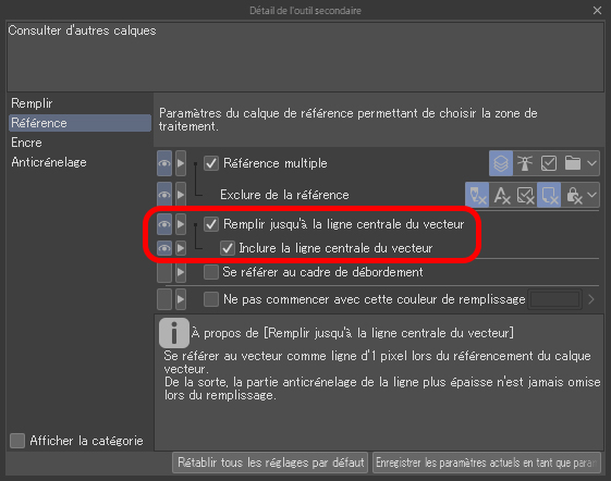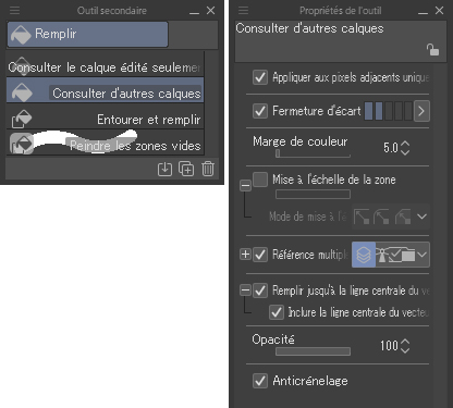 Référence multiple : cela vous permettra de vous référer à d’autres calques lors du remplissage. Utilisez ce paramètre lorsque vous souhaitez conserver le dessin au trait et les couleurs sur des calques séparés.