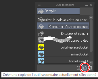 - Cliquez sur Créer une copie de l’outil secondaire actuellement sélectionné (la petite icône avec deux carrés et le symbole + situé en bas du menu des outils secondaires) pour créer un nouvel outil.