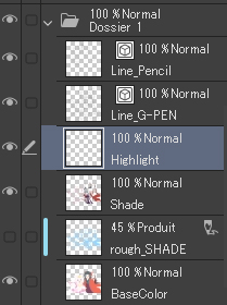 Si vous déterminez votre source de lumière lors de l’esquisse, vous pouvez alors faire appliquer les ombres en suivant cette source. Tout d’abord, je crée un nouveau calque de pixellisation. Je sélectionne ensuite un outil de plume opaque tel que la Plume G afin de pouvoir coloriser uniformément. Ensuite, je trace des lignes pour créer la forme des ombres selon mon croquis.