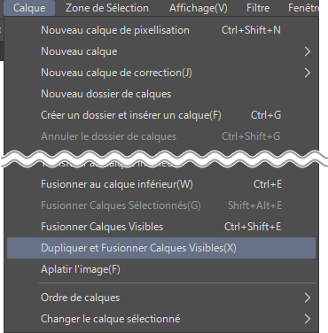 J’utilise la commande Dupliquer et Fusionner Calques Visibles pour fusionner tous les calques en un nouveau calque. Ensuite, je fais une copie.