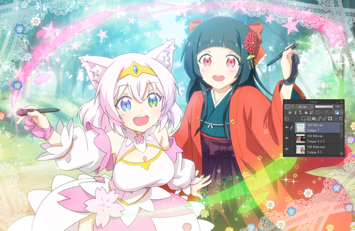 En plus des Calques de correction, je peux facilement ajuster la couleur de mes personnages en utilisant l’option Calques écrêtés.