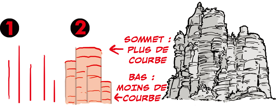Pour vous aider à varier les hauteurs et les positions, rappelez-vous que vous créez toujours deux chaînes de montagnes.