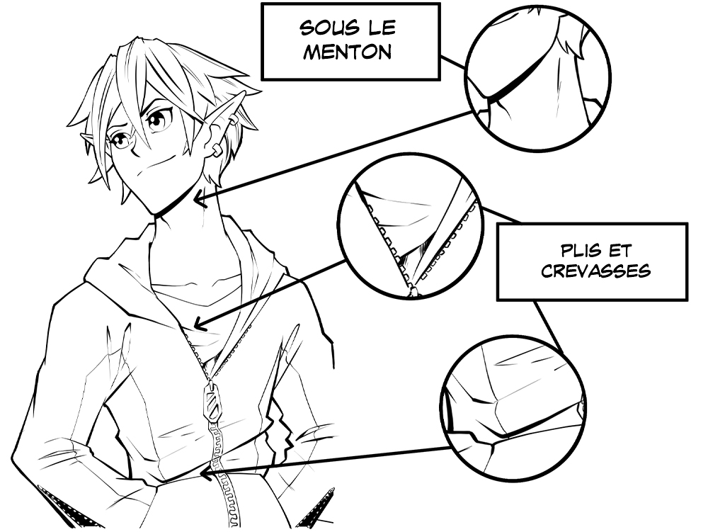 Essayez de réduire également les lignes à l’intérieur du contour. Le contour du personnage est parfois appelé lignes de maintien, car elles maintiennent littéralement les détails des personnages et des objets ensemble, ce qui lui donne plus de solidité et facilite la lecture.