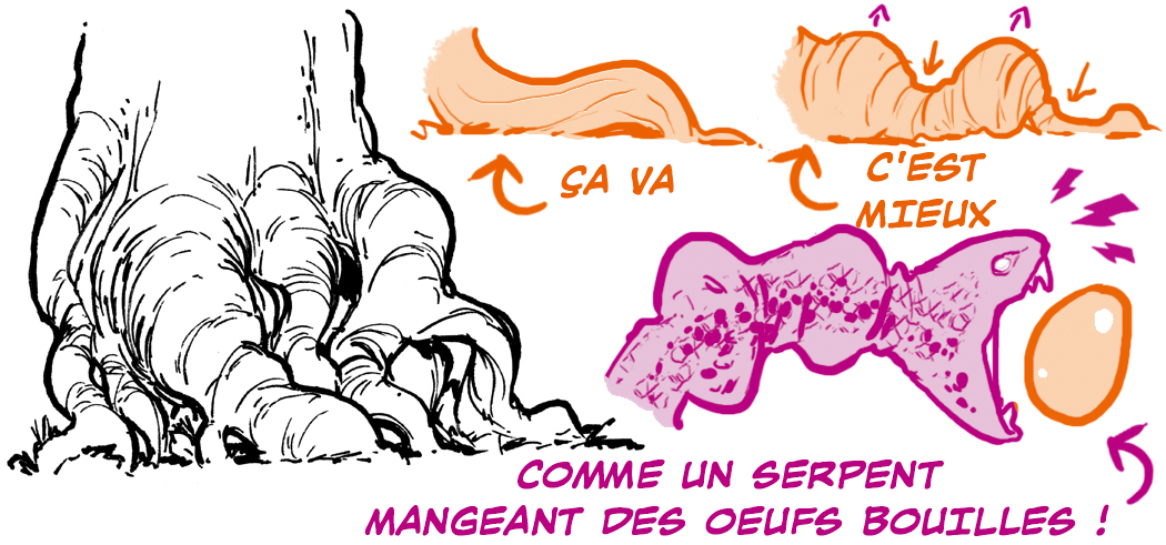 Imaginez les racines comme étant souples, d’inégaux rouleaux de pâtisserie, couchés l’un sur l’autre comme des tresses rugueuses.