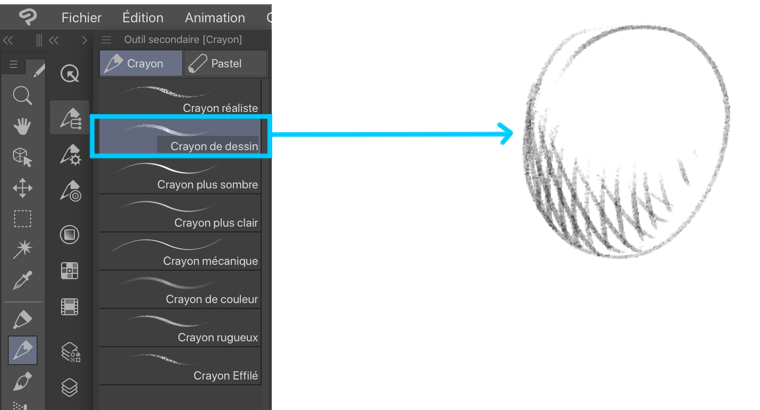 Emplacement de l’outil : Outil Crayon > Crayon > Crayon de dessin