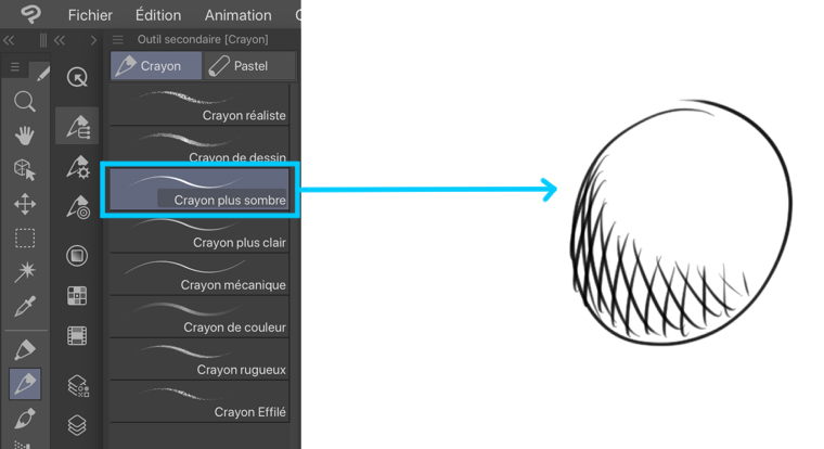 Emplacement de l’outil : Outil Crayon > Crayon > Crayon plus sombre