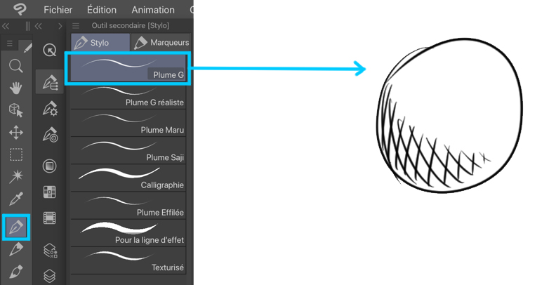 Emplacement de l’outil : Outil Stylo > Stylo > Plume G