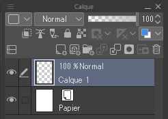 Une fois que vous êtes devant votre toile vierge, accédez à la palette des calques et placez votre souris dans le calque vide juste au-dessus du calque d’arrière-plan (papier). Ce calque est généralement présent par défaut dans CSP ; vous ne devriez pas avoir besoin de le créer.