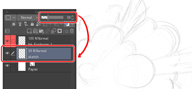 Si les lignes d’esquisse sont trop grasses ou gênantes, réduisez l’opacité du calque.